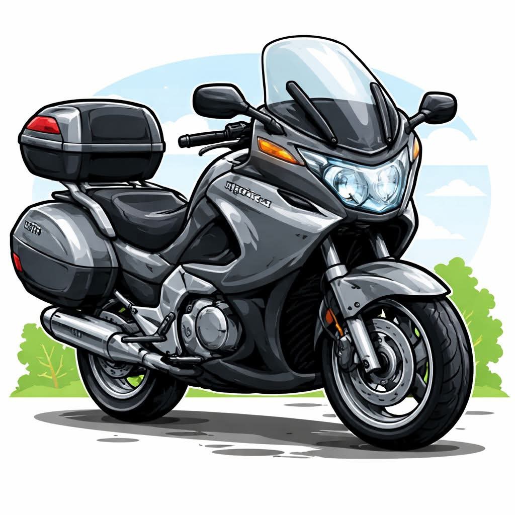 Chatgtp gezegd: Kun je een cartoonversie van een grijze Deauville NT700 maken?